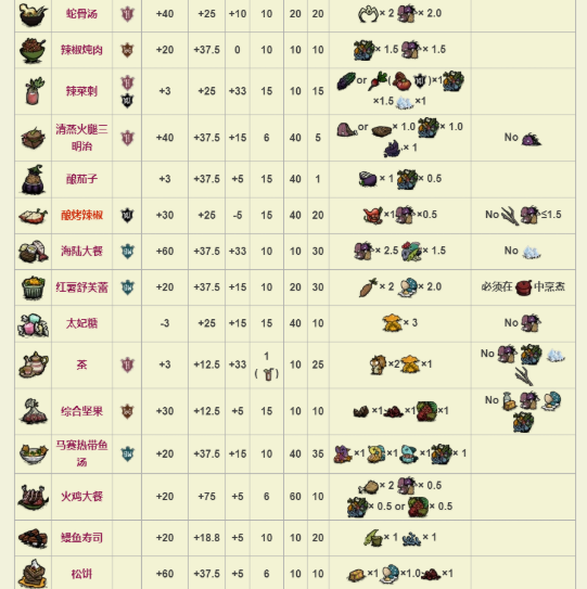 饥荒联机版食谱图表
