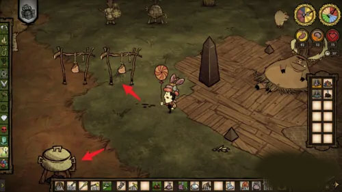 使用二本科技,解锁【烹饪锅】或【晾肉架】。