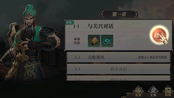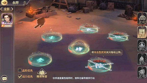 记住,每场战斗开始前都可以先布阵,选择合适的名将放置到合适的位置;