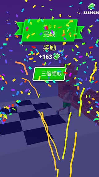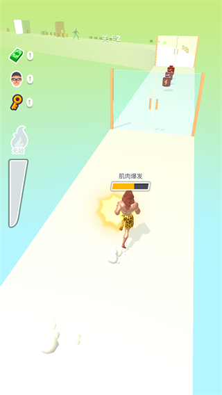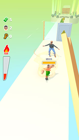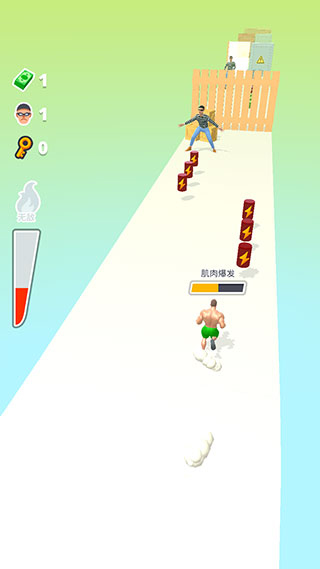 跑酷过程中可以收集电池来增强角色的体型,收集钞票则会增加通关后的奖励。