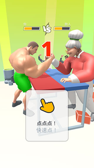 通过快速的点击,使自己的能量条比对手先积累满就可以获得胜利。