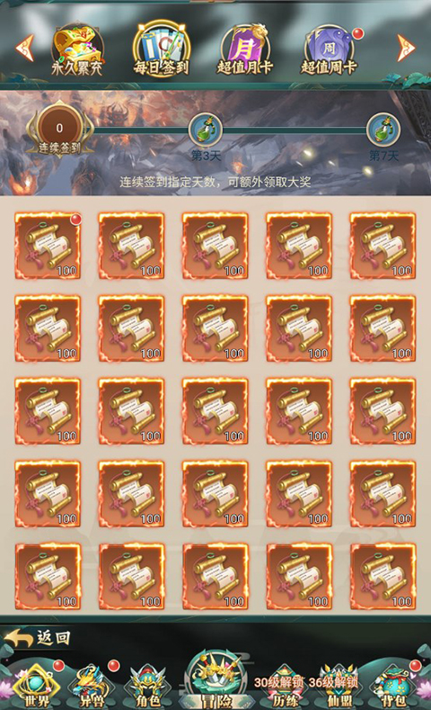 玩家在游戏内还可以领取签到礼包,每日签到即可领取丰富卷轴。