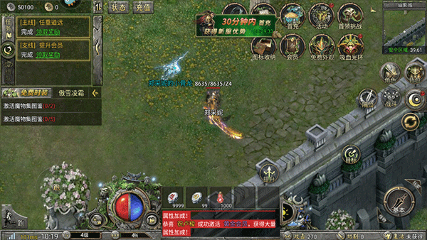 进入游戏后左侧是任务提示,完成主线任务可以快速度过前期;