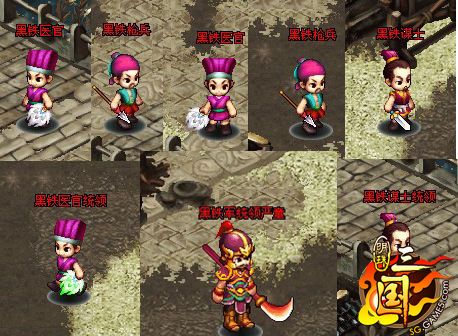 破军阵中的怪物和BOSS也不再是30河东废墟中的那些怪物,在破军阵副本中,一共有三种怪物,三个BOSS。分别是黑铁医官,黑铁枪兵,黑铁谋士,黑铁医官统领,黑铁谋士统领和黑铁军统领严童。