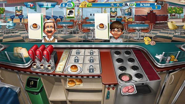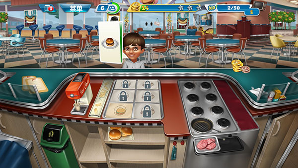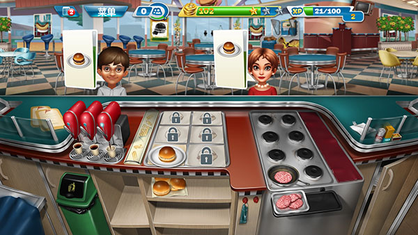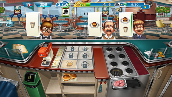 随着玩家不断解锁关卡,会得到更多新的食材和道具,也会越来越手忙脚乱。这里小编有一个小技巧分享给大家,很多客人会选择点套餐,而套餐中只要上了一个食物就可以增加顾客的等待时间,因此可以常备一些饮品,用于增加顾客的等待时间。