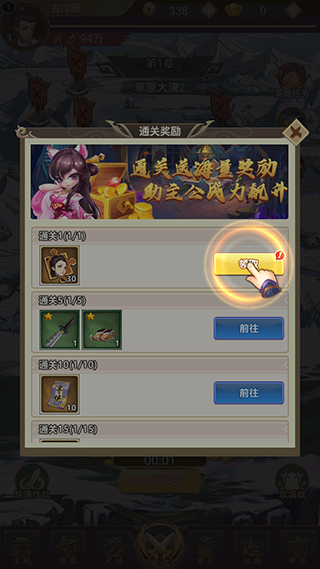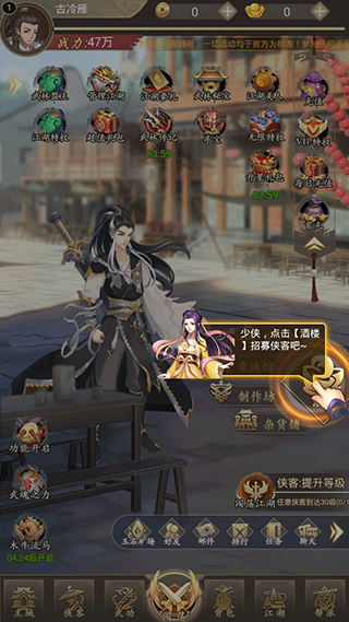 然后多去刷副本获得养成资源,侠客强大后才能打过更难的副本,形成一个良性的循环后你就入门了。