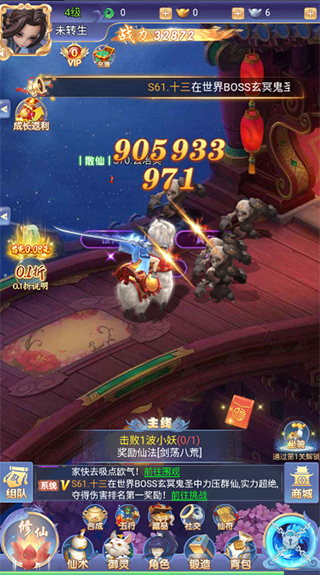在主角界面可以给主角穿戴装备、搭配神兵、羽翼等,修仙世界有的你都可以在本作中体验到。