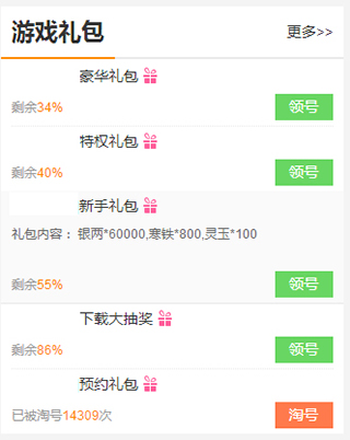 步骤2:登录专区首页,查看“礼包发放”的列表;