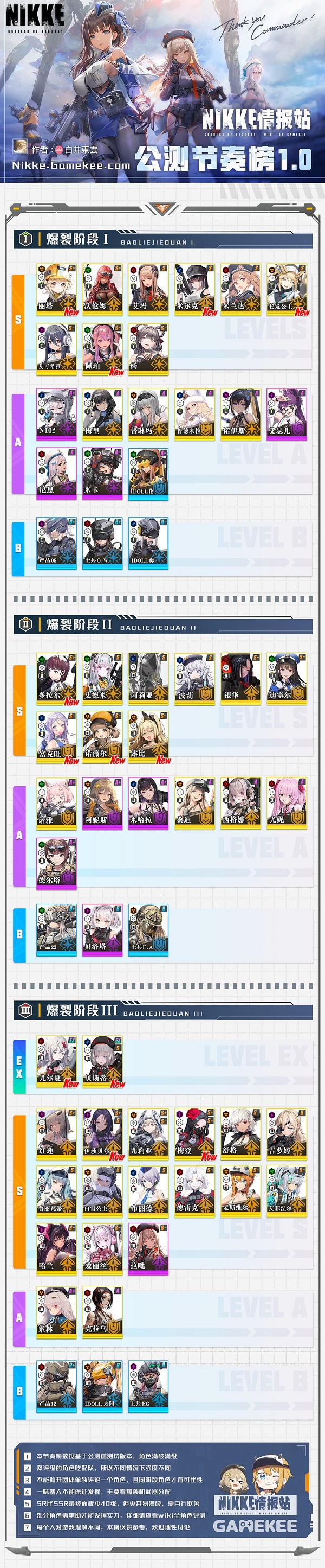 本次节奏榜加入了公测版本12位新角色 并根据公测技能属性数据进行了调整