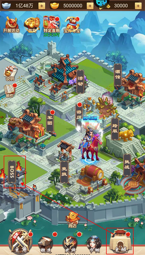 玩家在达到二十级之后,即可解锁主城,在主城页面点击上方的“boss”即可进入boss页面。