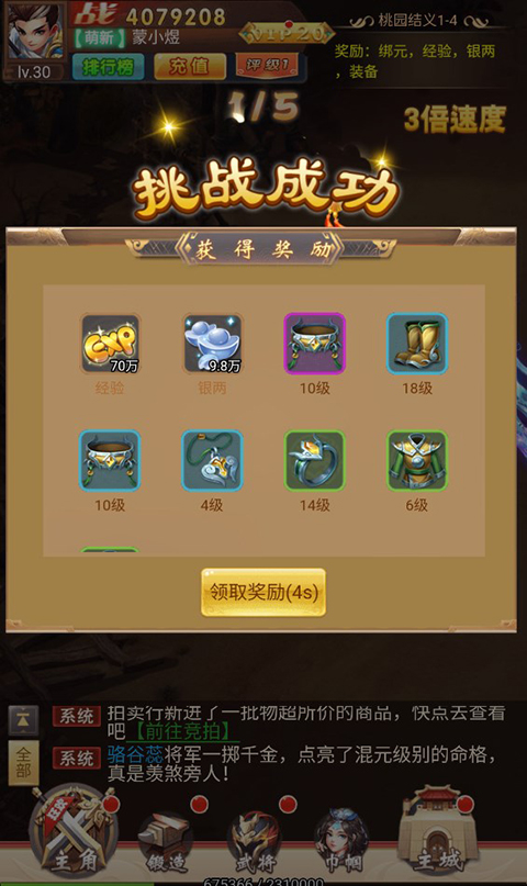 在消灭所有敌人之后,玩家就可以获得胜利啦,点击领取奖励即可。