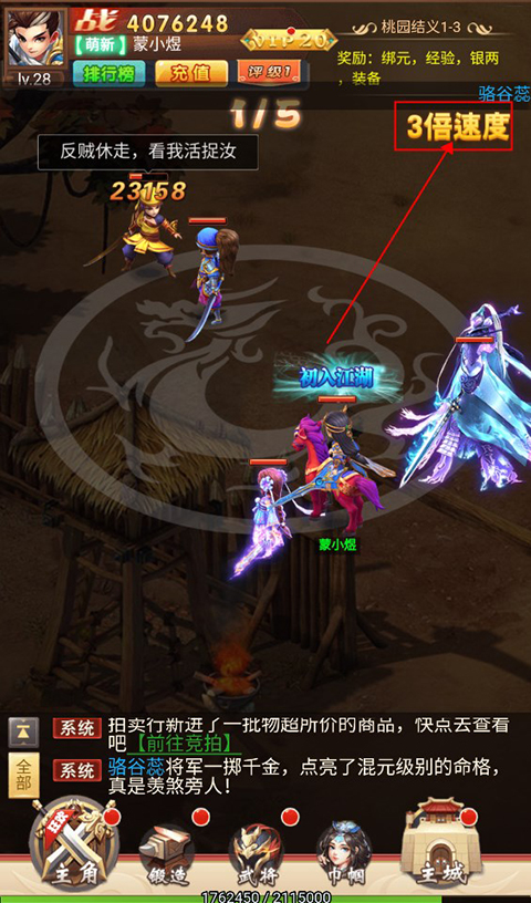 玩家在开始挑战后,游戏人物会自动开始回合制战斗,玩家可以点击右上角的倍速,调整战斗速度。