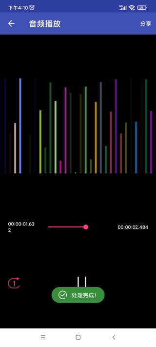 之后即可对音乐进行裁剪,处理完成后还可以分享。