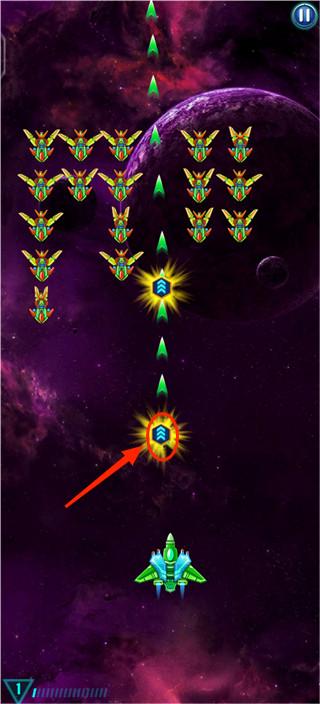 一共有三波敌人,第一波是最简单的,玩家还可以在击败敌人飞船后拾取加强的道具
