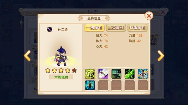 点击任一星将即可看到星将技能和属性,再根据技能和属性选择自己需要出战的星将。
