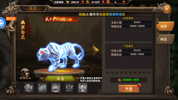 完成第二阶段任务免费获得一只战宠,佩戴上可以跟随攻击