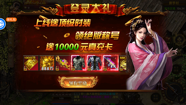 上线就送顶级时装、领绝版称号、送10000元真充卡直接、vip15免费得