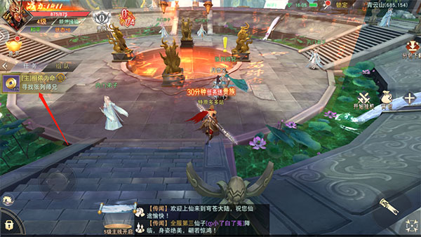 仙侠类游戏大家肯定都知道都是接任务完成,而左上角可以让你快捷接收任务。