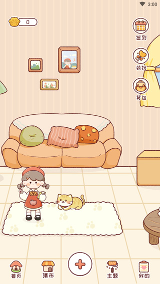 点击主题就可以购买家具,长按家具就可以按照自己风格拖动装饰小屋;