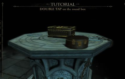 当我们把上方的转盘缺口补上后,我们会发现盒子的底角出的机关被我们触动了,这时我们只需要用手拉开小抽屉,这是我们会得到眼镜镜片。