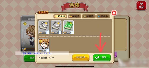 选择好卡片和经验书之后,点击右下角的确定进行合并。