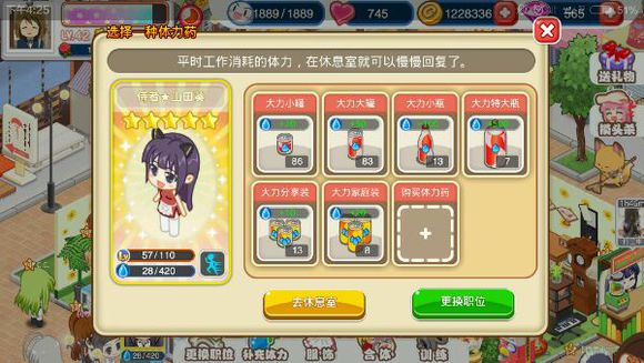 正下方显示他们的等级,有的店员还会出现重复(因为召唤店员的时候是随机的)。点击一个我们想要合并的店员头像,进入这个店员的操作界面。