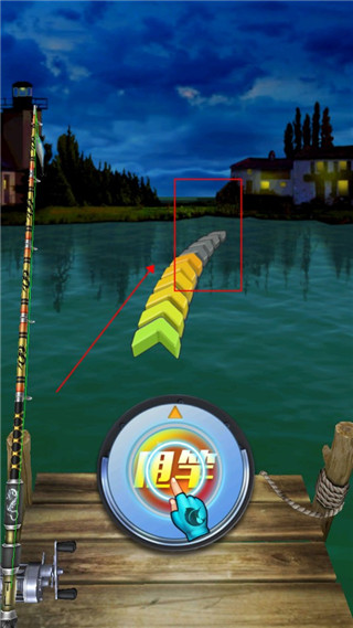 钓鱼》这款游戏中似乎简化了,抛竿这个技术活变成了反应测试,当我们按下中间的准备按键后,屏幕中间就会出现一条能量条,来回波动的能量条是你要抛竿的力量,当我们按下中间开始按钮,便抛竿成功。