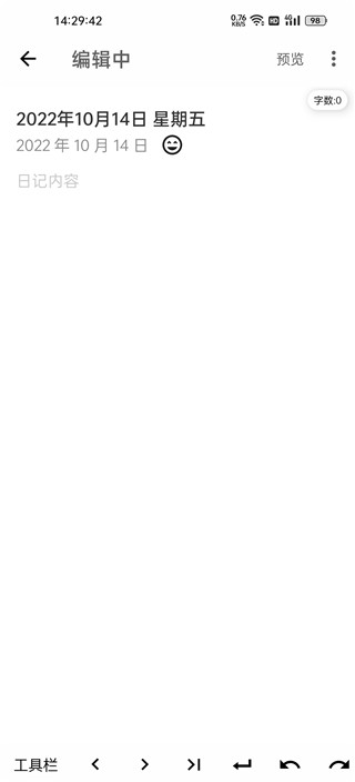 它可以帮助你很简单的进行光标移动,粘贴,缩进和换行的功能。 当然不止这些,自动天气获取可以帮助你自动填写每天的天气,只要你授予我们定位权限和联网权限。