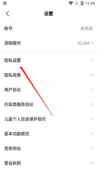 进入后点击隐私设置;