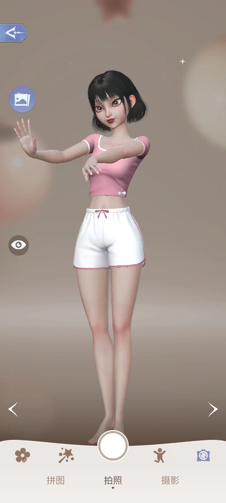 点击左边的照相机图标,即可用搭配好的服饰进行拍照;
