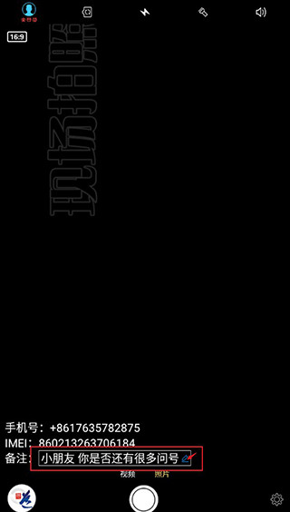 现在返回拍摄页面,就可以看到自己的备注内容了,若是想要修改,可以点击蓝色标记按钮