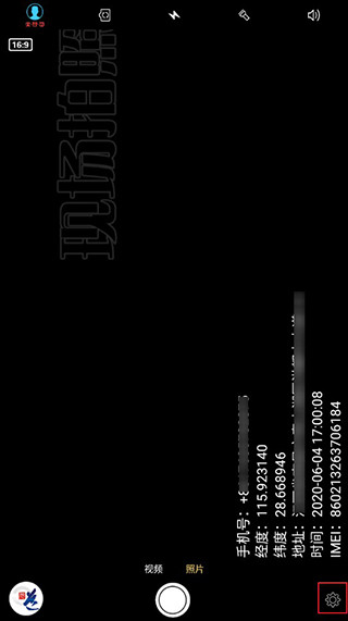 返回到拍照页面中,可以看到右下方有一个水印签名,点击【按钮】拍照即可展现出来水印签名。