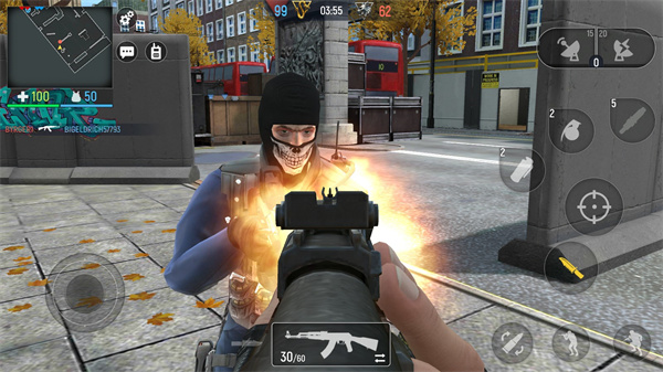 左侧遥感,右侧射击,瞄准、换弹、投雷、武器更换等一系列功能及操作中规中矩,适合绝大多数人的习惯,在一局有限的时间限定条件下,尽可能的击杀敌对势力获得积分,死后可以从基地复活,可与队友协同作战。