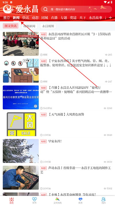 在此可以找到时政、民生以及政务等各个内容的永昌新闻。