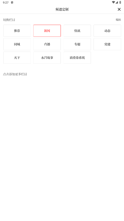 切回首页点击右侧的+号,能够找到全部新闻频道