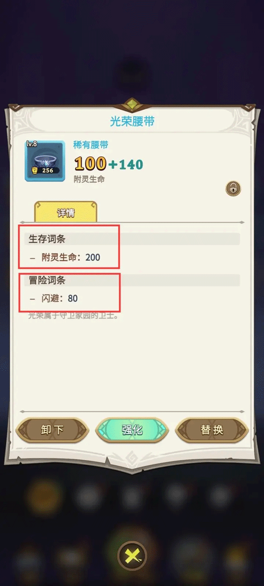 可提高玩家参与生存玩法时初始角色的属性,通过附灵、生存装备提高角色属性可以应对后续关卡更轻松。另外,生存装备还具有冒险词条,可在冒险模式中生效。
