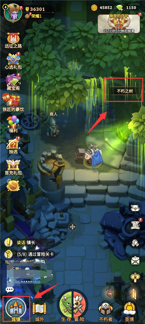 进入游戏时玩家必须选择一个职业,不过这个职业并非固定不变的,过完新手引导后,可前往【城镇】尽头的【不朽之树】使用钻石解锁另外两个职业(解锁第二职业需100钻石,解锁第三职业需500钻石,共计600钻石)。