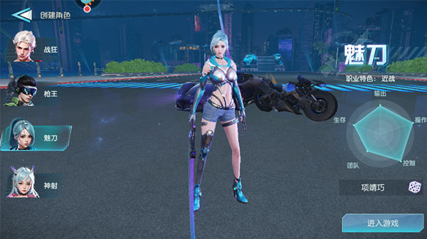 选择创建角色,有战狂、枪王、魅刀、神射四个职业可以选择。