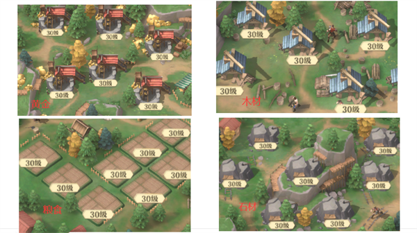 一、资源征收:城内资源建筑伐木场、农田、金矿场、采石场是我们获取资源的主要途径,建筑的等级越高,我们得到的资源就越多!