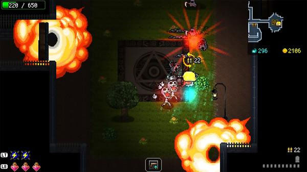 炸裂树莓浆游戏整体节奏还算是比较快地,玩起来感觉有些爽快。玩法跟传统地牢类游戏,特别是同类型的带有roguelike元素的2D射击游戏差不多。所有关卡中的地图全都是随机生成,人物能够携带近战武器和远程武器两种,在流程中玩家可以通过收集怪物掉落的以及开宝箱获得的宝物提高角色的属性。