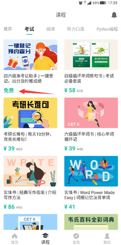在考试中,可以看到有一个免费东西。这个是免费的。