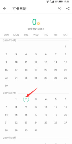 点击右下角【我的】,点开箭头指示处的【打卡】。