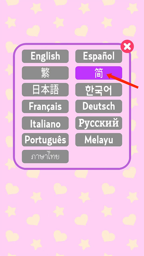 打开小偷独角兽游戏,首先选择语言,包括简体、繁体、英文、日语、韩文等语言,选择【简体】选项,