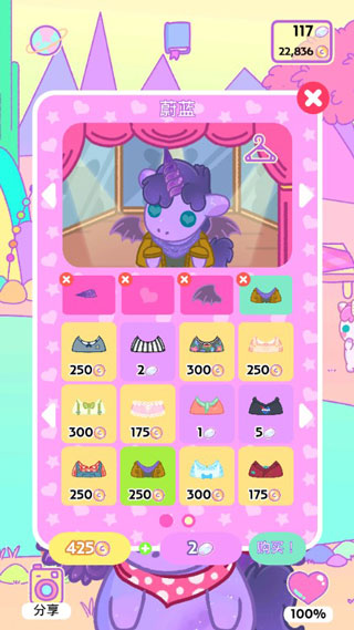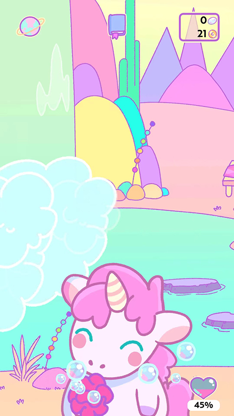 除了需要照顾独角兽和解锁各种独角兽以外,独树一帜的装扮系统也是魅力四射,搭配你喜欢的独角兽造型,让游戏更加奇特