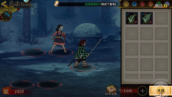 我们招募的角色可疑在右侧卡槽出现,勾选后点击“开战”安排上阵。