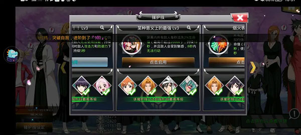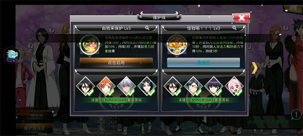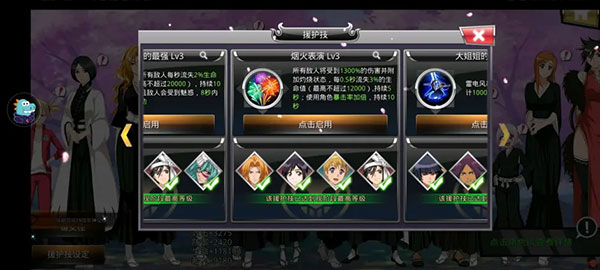 虽然新角色需要多加练习,不过也不能因此耽误剧情进度,快来使用助战系统提升自己的通关效率吧。在游戏中中,玩家进行副本、宿命对决、番队等挑战时,都可以使用援护技和支援角色提升战斗能力。