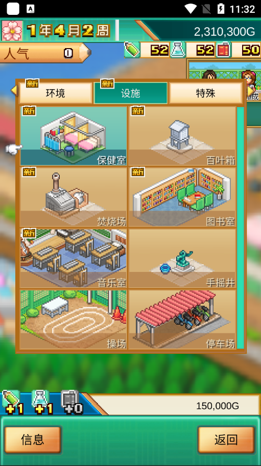 游戏中要注意对于每个设施的了解,还要注意正确的去升级那些设施来获得更多的加成,这样的话学生和教师在使用这些设施的时候也会哟这更多的能力加成,这一点很关键。