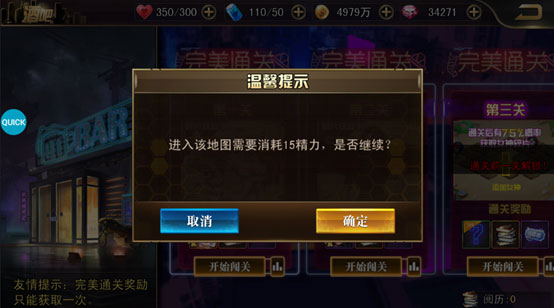 进入酒吧关卡需要消耗精力,不同关卡消耗精力不同。