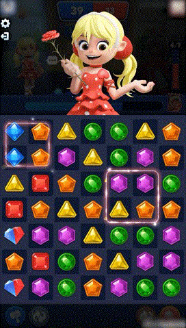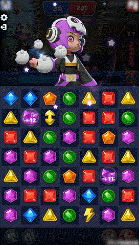①角色:紫卡里,推荐说唱黑妹。技能也是变宝石颜色。思路和斗牛士是一个思路,不过,黑妹的效果优点是范围大,缺点是不能整理棋盘。