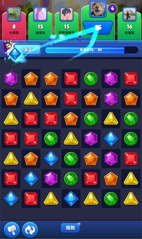 宝石大乱斗官方版中的丛林乱斗活动堪称最紧张刺激的PVP玩法,三个回合要求玩家每回合在限定步数内达到“及格线”,才可以晋级下一个回合,最终只有2名幸存者可以获得丰厚的奖励。